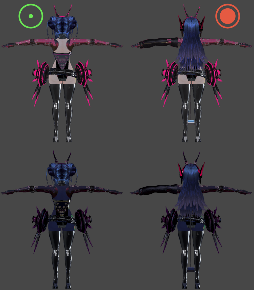 - Clothing toggles for overshirt, bodysuit, horns, mask, headphones, tail, hip weapons